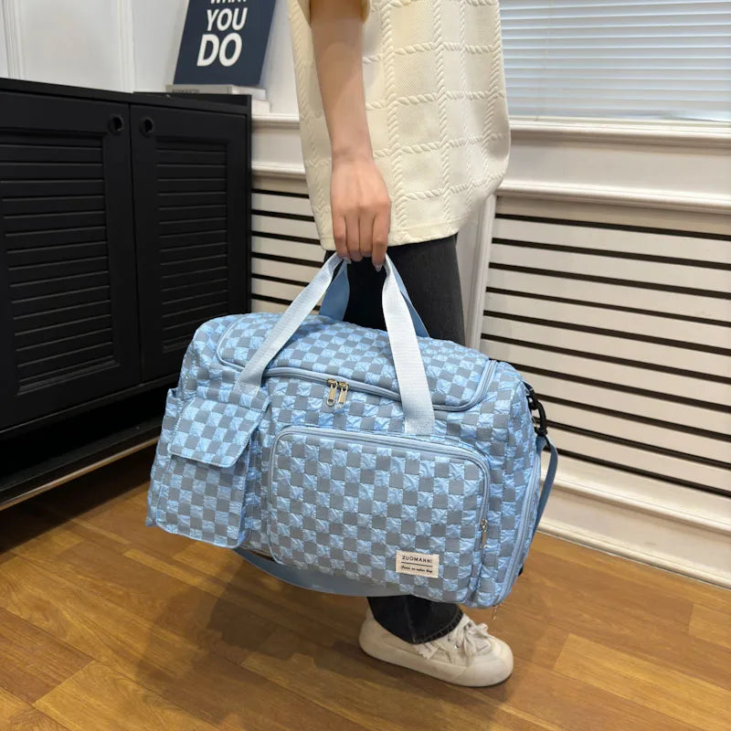 Fashion Large Capacity Checkerboard Pattern Duffle Handbag, Lightweight Travel Luggage Storage Bag, Portable Sports Fitness Bag