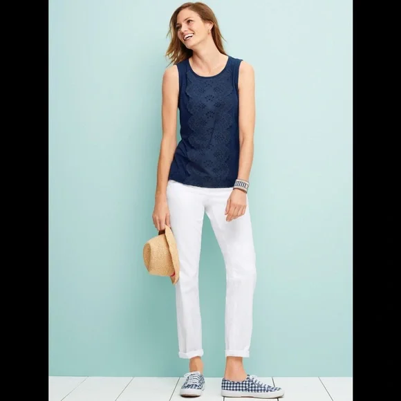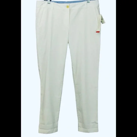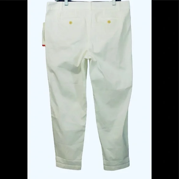 NWT TALBOTS The Weekend Chino Pants White 10Woven from fine cotton yarns with just a touch of spandex, this season, The Weekend Chino has the same laidback stretch fit you've come to love. But the updated twill has a new, brushed and washed finish, making these pants extra soft and cozy. Roll the hem to complement the relaxed silhouette.These are so wildly popular, they are SOLD OUT at TALBOTS. New. With. Tag.