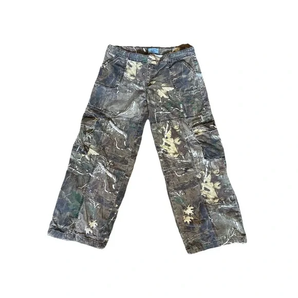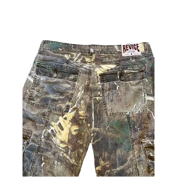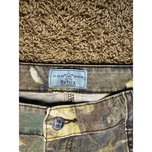 Missing drawstrings on bottom of both legs. See pics for reference. The Revice Denim The Amelia Oakland Baggy Wide Leg Camo Cargo Pants in women's size 34 are a stylish and versatile addition to any wardrobe. Made from 100% cotton denim with a medium wash, these pants feature a low rise and wide-leg fit for a comfortable and trendy look. The cargo pockets and camo pattern add a practical and fashionable touch, while the belt loops offer a secure fit. Perfect for all seasons, these pants can be dressed up or down for any occasion.