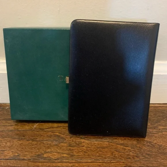 This Hard Shell Leather Fold Out Photo Album with Secure Snap In Closure is the most elegant way to store and show off cherished photos of your loved ones. From Famed Leather Maker, T Anthony was Founded 1948 and is the premier American luxury luggage and leathergoods company that produces timeless and stylish products that are designed and created ethically and responsibly by highly skilled craftsmen. T. Anthony combines classic refinement with the highest quality materials ensuring dependability and durability so that the collections can be passed from generation to generation.Comes in the signature T Anthony green box, and discretely monogrammed with the initials RB in gold.