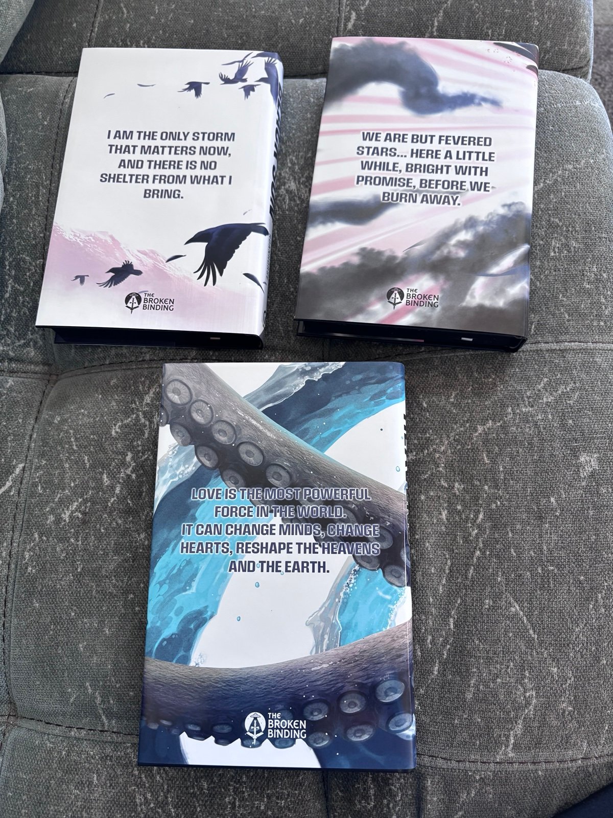 Brand new, never read. Smoke free home. Tier 2 subscription of the broken binding. Between earth and sky trilogy with black sun, fevered star and mirrored heavens. Each book has a redesigned cover, sprayed edges, foiling on hardback, endpaper art and a ribbon bookmark. Author is Rebecca Roanhorse. These are on amazing condition. Beautiful books. Broken binding is a book subscription box and these are not currently available to purchase. Also comes with bookmarks for each book that was included in the subscription box. Thanks for looking!